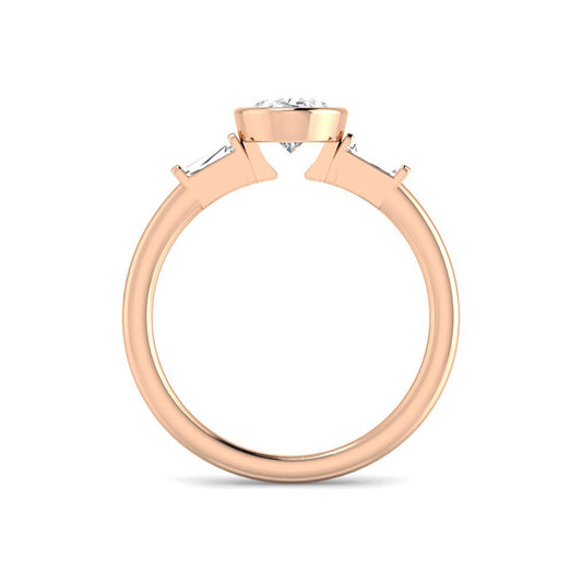 Bezel Set Round Solitaire w. Baguettes (Rose Gold)