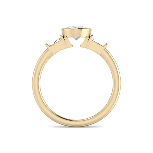 Bezel-Set Oval Solitaire w. Baguettes (Yellow Gold)