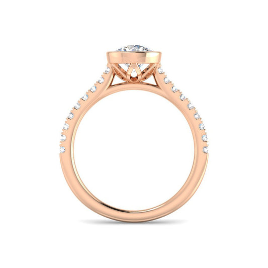 Bezel Set Solitaire Engagement Ring w. Diamond Band (Rose Gold)