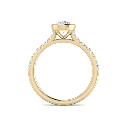 Bezel Set Round Solitaire w. Diamond Band (Yellow Gold)