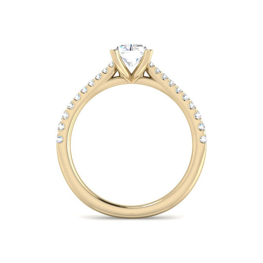Bezel-Set Round Solitaire w. Curved Pavé Band (Yellow Gold)