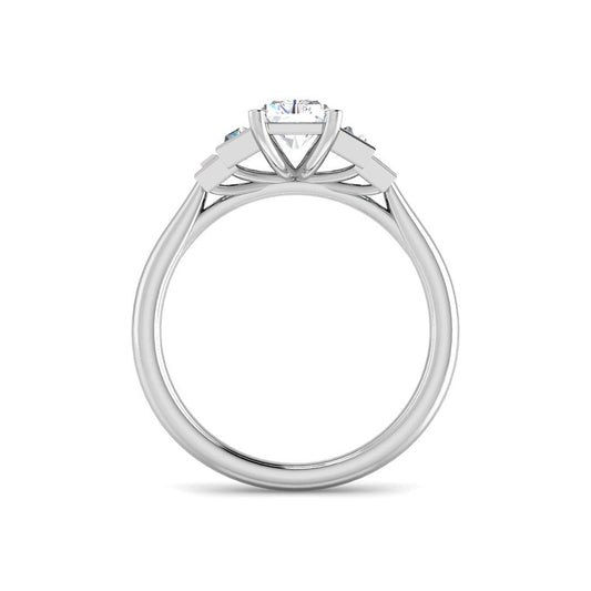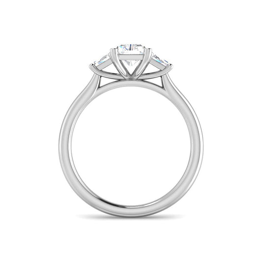 Emerald Cut Trilogy w. Trapezoid Side Stones (White Gold)