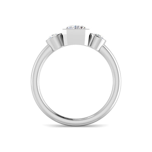 Emerald Cut Trilogy w. Pear Side Stones (White Gold)